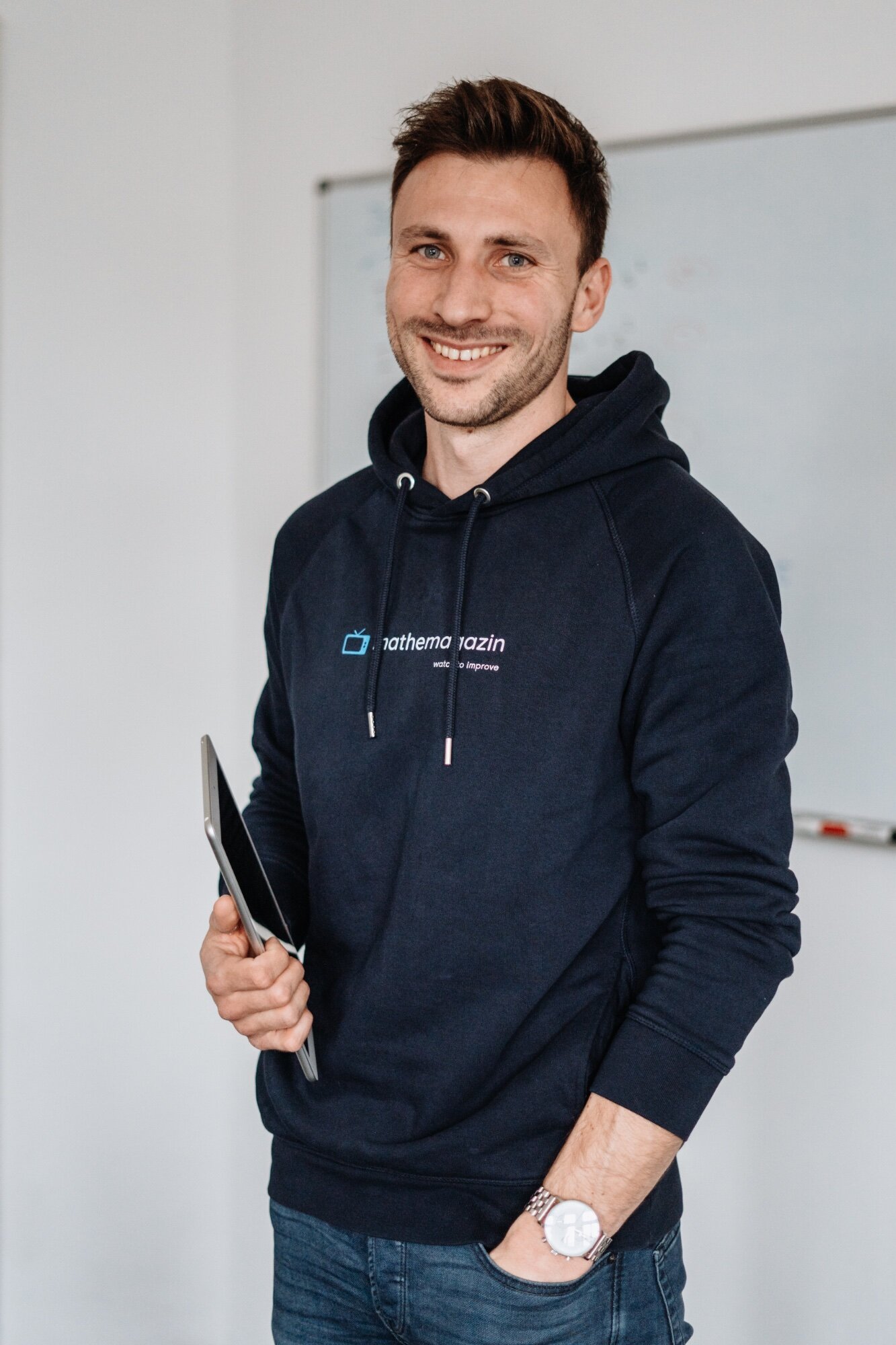 Marcus erklärt – vor der Kamera und rechnet live am Tablet. Über 6.000 Videos, alle ohne Schnitt.